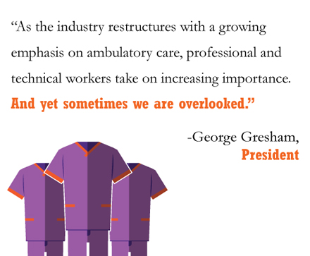 All 35,000 have advanced education and training, and require continuing education to both meet certification requirements and to keep up with changing technologies and advanced methods of analysis and treatment. We are absolutely vital to the delivery of quality care. And as the industry restructures with a growing emphasis on ambulatory care, professional and technical workers take on increasing importance. And yet sometimes we are overlooked.