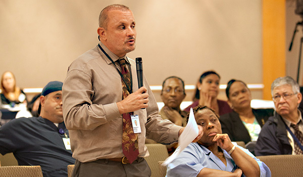 1199SEIU delegates are the elected rank-and-file leadership of our union. Like “stewards” in other unions, our delegates are workers on the job who are democratically chosen by their co-workers to represent the voice of the union in their institutions. Delegate elections are generally conducted by department and/or shift. Delegates meet in their chapters and also at in regional, divisional and union-wide assemblies. Our 1199SEIU Executive Council, the highest elected body of the union, includes dozens of delegates who represent various job classifications and all the geographical settings in which the 1199SEIU organizes.