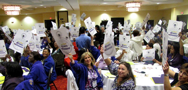 In response to new state legislation that cuts safe staffing levels and bedside care in Florida nursing homes by 18 minutes per resident per day, 1199SEIU Florida caregivers have launched the “Every Minute Counts” campaign to protect nursing home residents from potentially life-threatening health risks. Nearly 300 caregivers ratified the campaign at an 1199SEIU Florida Joint Delegate’s Assembly in St. Petersburg last month.