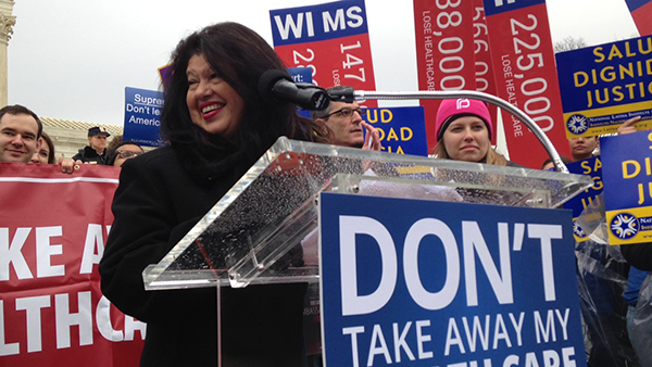 Marilyn Ralat Albernas, RN, speaks at a press conference outside the U.S. Supreme Court to advocate for keeping federal subsidies in place that have helped millions of people afford quality health insurance.