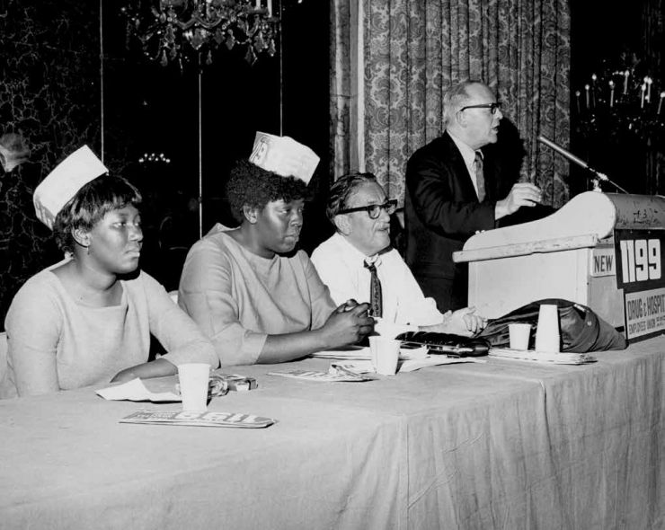 In the spring of 1969, some 450 workers – 90 percent African- American women – struck the Medical College Hospital of the University of South Carolina (MCH) and the smaller Charleston County Hospital after 12 workers at MCH were unjustly fired. One of those fired, an MCH nurse’s aide named Mary Moultrie who had previously worked in New York City as an LPN but whose credentials MCH management refused to accept, led the strikers. Months earlier, Moultrie had been elected president of Local 1199B, the Union’s first out-of state local.