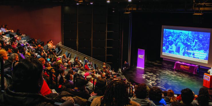 The first event was held on January 29 at Long Island University’s Kumble Theater in Brooklyn. The meeting brought thick crowds to Central Brooklyn who were eager to hear about the Census and share their views of the challenges faced by Brooklyn’s healthcare system. Paulette Forbes, from Brookdale Medical Center, and Michele Ned, a long-time activist at Interfaith Medical Center, gave a joint presentation on the revivals of their struggling institutions, and the central role a mobilized workforce played in it. (Interfaith and Brookdale are among Brooklyn’s vulnerable safety net hospitals.)