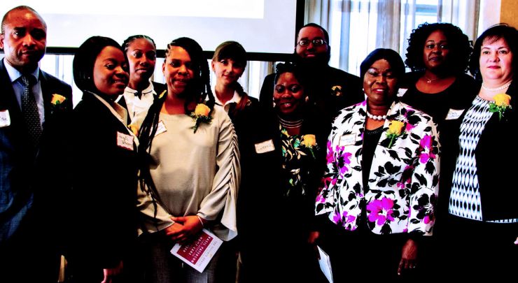 The Union, Funds and management came together in 1199’s Cherkasy Davis Conference Center on April 17 to celebrate winners of the 2019 Basil Paterson Scholarship. The program is named for 1199’s great friend, labor lawyer Basil A. Paterson. Mr. Paterson, an attorney for nearly five decades, spent 20 years as counsel for 1199SEIU and was a tireless advocate for homecare workers. He also served as Secretary of State of New York under Gov. Hugh Carey and Deputy Mayor of New York City under Mayor Ed Koch. The Paterson Scholarship is available to eligible members covered by the Home Care Education Fund, which administers the annual labor/management prize. The scholarship provides tuition and financial support to homecare workers enrolled in college and allied health certification programs. Awards are based on a competitive review process and may be used to pay for up to 9 credits per semester. The scholarship includes a cash stipend each academic term providing resources to cover tuition and college fees, transportation, child-care expenses and, where applicable, the cost of review courses for licensing exams. This year’s winners are: Abigail Frimpong, Bohdanna Kudryk, Cruzita Jones, Dalia Barbos, Florence Eddie, Gwyneth Jack, Odile Pamphile, Shevourne Joseph, Sixtus Onyeche and Stacey Flemming- Greene. For more information about the program, contact Frances Sadler at Frances.Sadler@1199Funds.org.
