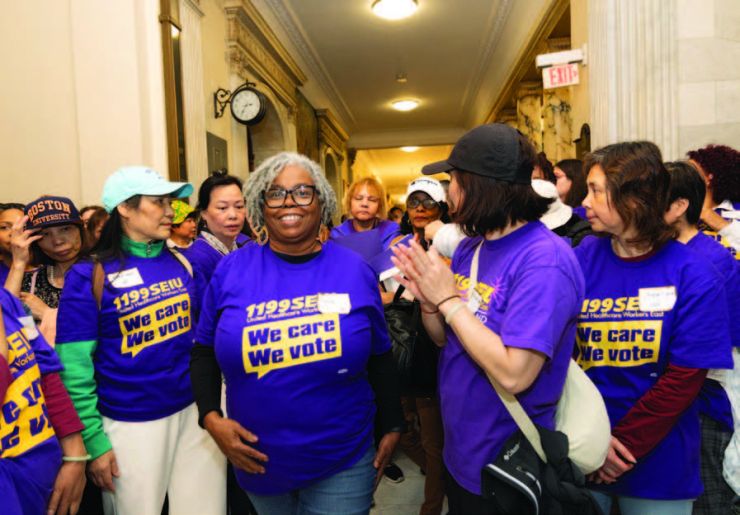 This year the members’ focus was on extending the ban on mandatory overtime to the entire care team; requiring hospitals to address workplace violence; establishing an immigrant legal defense fund; creating a labor peace agreement for homecare; and making multinational corporations pay their fair share in taxes.