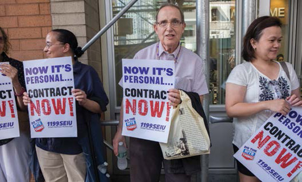 Members contrast those profits to their paltry wages. More than 2,500 of them earn minimum wage. And more than 5,000 earn less than the $15 per hour low-wage workers have been demanding around the nation. Members also want to know why a company that is proudly reporting record profits to investors is at least $8 million in arrears to the 1199SEIU National Benefit Fund.