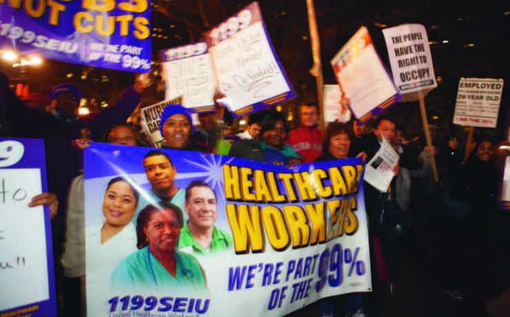 In 2011, the Union stood shoulder-to-shoulder with the Occupy Wall Street activists who were protesting rampant economic inequality and corporate dominance. The 1199 leadership saw the movement as a landmark in the fight for justice.