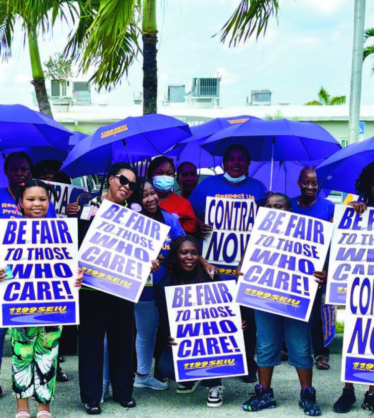 In Florida, 1199ers mounted informational pickets at 11 different locations to raise awareness of what they called a “care crisis” at long-term care facilities owned by the for-profit company, Aspire Health Group.