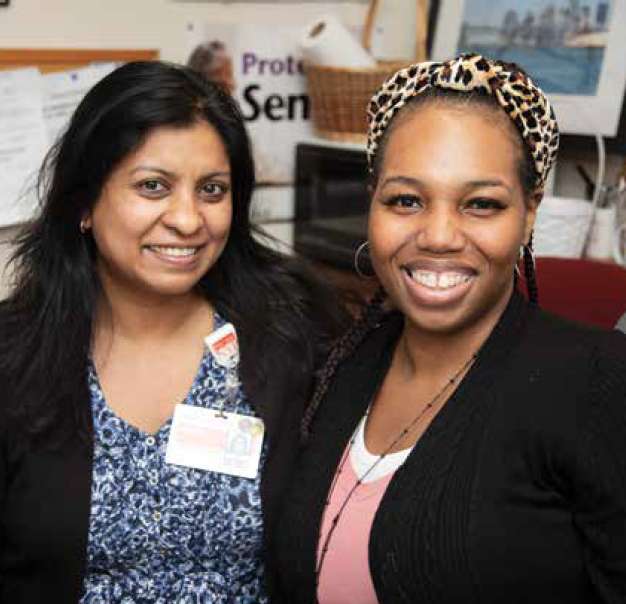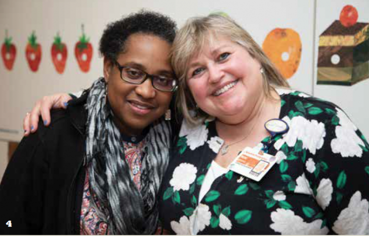 4. Winsome Sewell (left), a Pediatric Pulmonary Social Worker for 34 years, started her job the same day as Irene Sprung (right), a Social Worker in the NICU who works with infant cardiac patients. She says: “Every mother feels a sense of responsibility. I am here to help them realize that it is not their fault.” Sewell, who works mainly with cystic fibrosis patients, recalls: “When I first started in 1988, these young people weren’t living past 20.