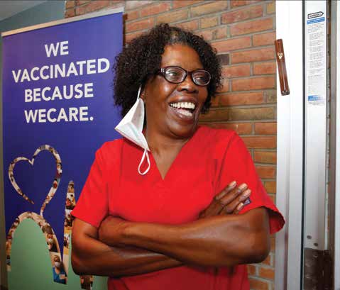 Though some became sick or had to care for family members affected by COVID-19, Wesley Gardens workers persevered. They came to work every day and cared for the residents who need them, Today, as vaccination numbers go up and New York State is re-opening, Wesley Gardens workers can welcome visitors back in the facility, while continuing to be vigilant about safety and protection. 1199 Magazine visited Wesley Gardens recently to talk with workers about their work and their experiences moving through the pandemic.