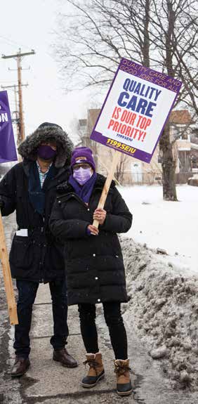 9. League victory – NY After months of virtual negotiation and a strike vote, 1199ers negotiating with the League of Voluntary Hospitals and Homes secured another strong 3-year master contract in September, which serves as the gold standard for the entire union. This agreement covers 90,000 members and maintains some of the best wages and benefits in the country.