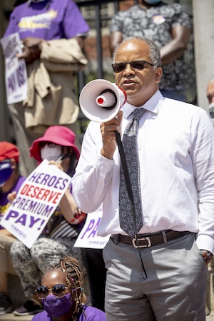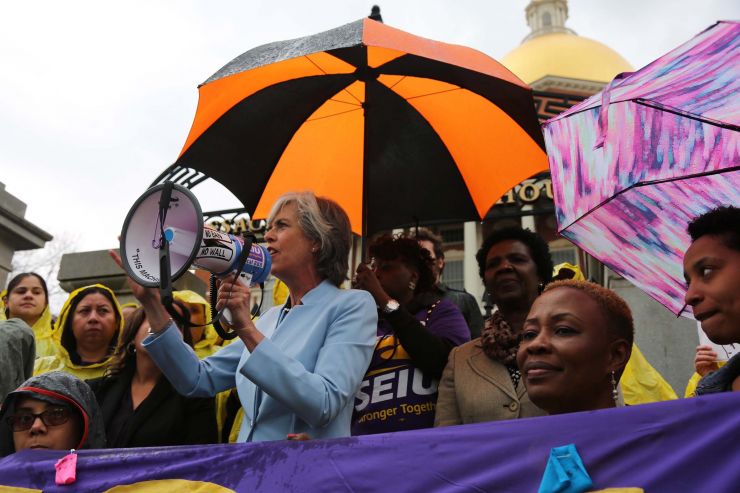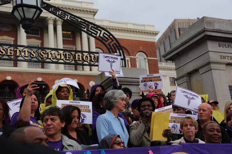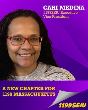 Cari Medina, Executive Vice President of 1199SEIU, which represents over 85,000 healthcare workers throughout Massachusetts, issueda…