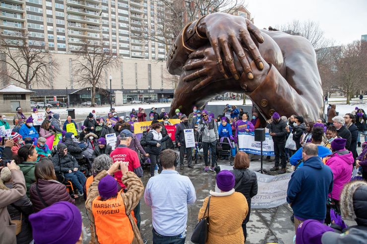 Home Care Workers Rally at Governor Healey’s Office Demanding Better Wages and Benefits