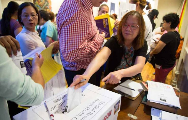 Last year, homecare workers from Medical Resources voted to organize and join our union. A bargaining committee for the company’s 250 private homecare agency workers – many of them Chinese and Latino – spent the past year analyzing documents and negotiating with executives. Workers negotiated the contract across three different languages, securing a number of new benefits for a workforce that had been mistreated in the past. Workers will soon receive at least five days of paid time off – made possible by converting the right to state-mandated earned sick time to paid time off so that it can be used for any reason.