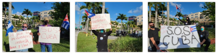 Caregivers and other staff at Kendall Regional Medical Center marched, displayed signs and chanted support for brave Cubans who have taken to the streets calling for basic living needs and government reform.