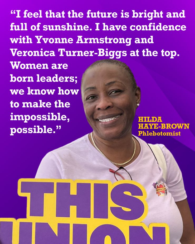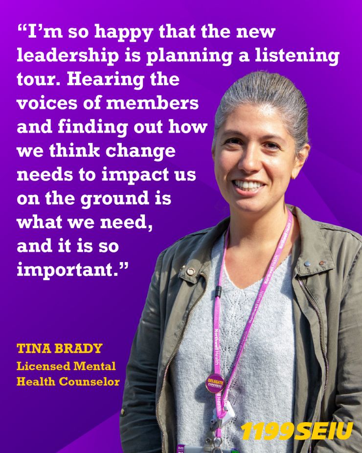 Для меня большая честь быть вашим президентом, и я благодарна за оказанную поддержку и доверие. Независимо от того, где вы работаете: в больнице, доме престарелых с медицинским обслуживанием, клинике, аптеке или оказываете уход на дому, — знайте: это момент стал возможным благодаря вам. И вместе мы построим более сильный, более сплоченный профсоюз 1199SEIU.