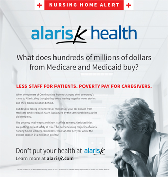 On Thursday, August 7, the caregivers of 1199SEIU launched a public information campaign to educate New Jersey residents about quality care and workers’ rights concerns at the for-profit nursing home chain Alaris Health. Starting this week, ads are running in several Hudson and Bergen County, NJ, newspapers, and a website, Alarisk.com, provides further information and a petition for New Jerseyans to take action.