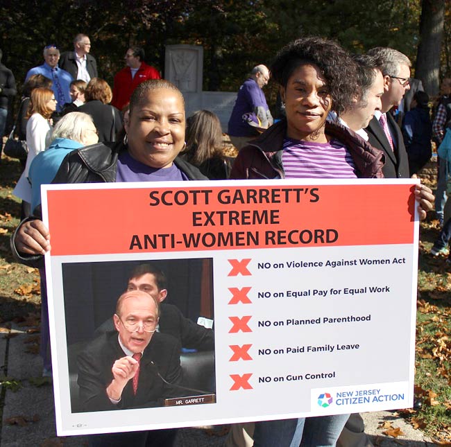 Milly Silva, 1199SEIU Exec VP, noted at the rally that the majority of 1199ers are women who have much at stake in the elections. She said that Garrett has fought against social progress every step of the way, adding, “Scott Garrett’s abysmal record is a stain on New Jersey and an affront to millions of women, immigrants, and workers in our state.”