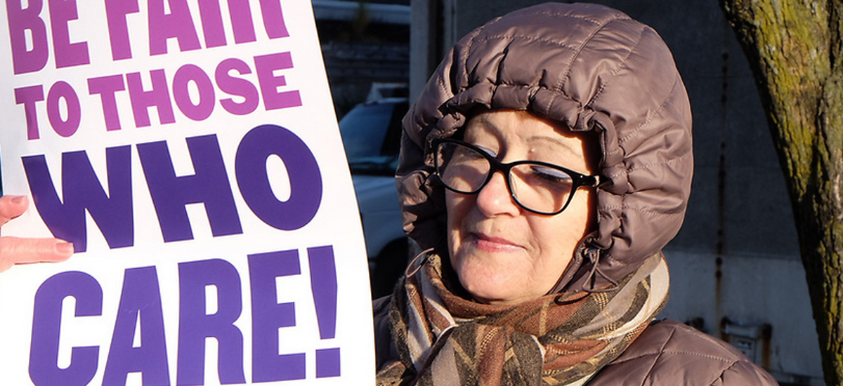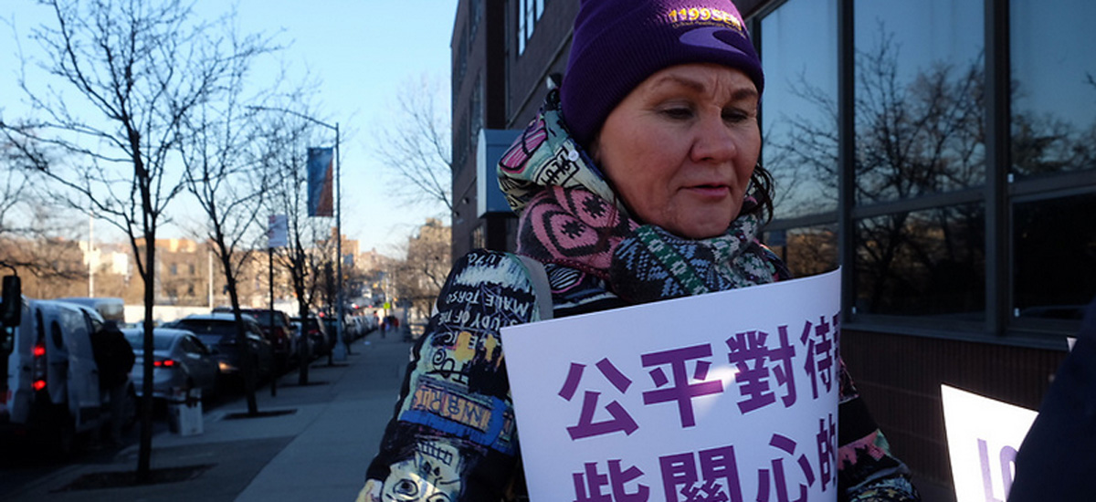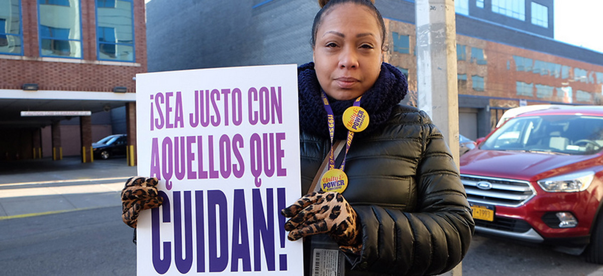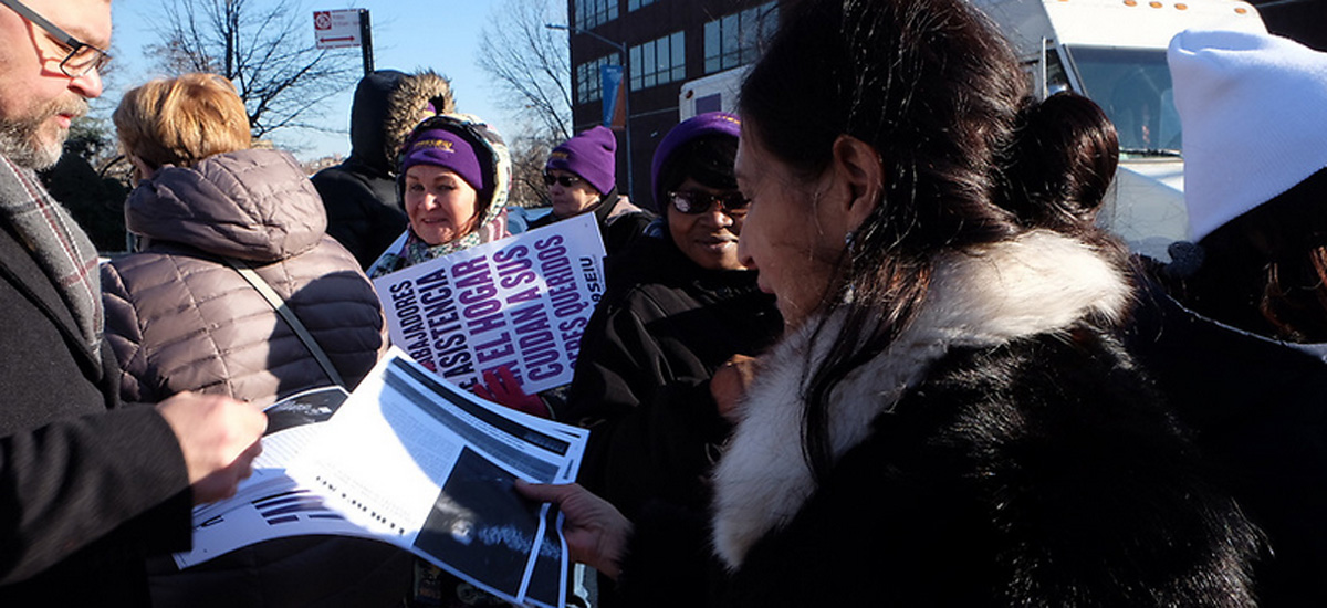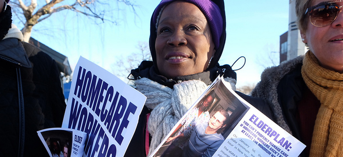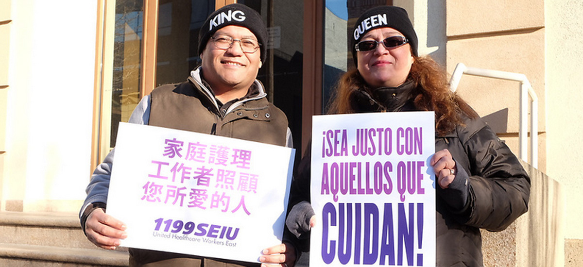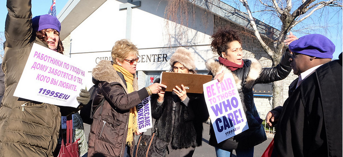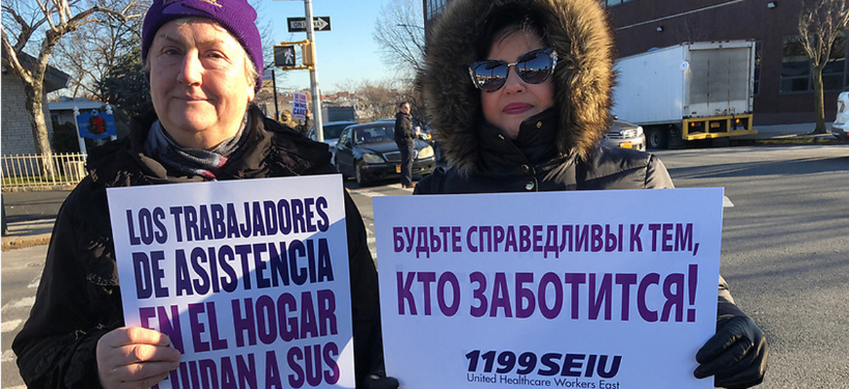 1199SEIU home care workers were out in force Thursday morning in front of Elderplan in Brooklyn demanding: Be Fair to Those Who Care!