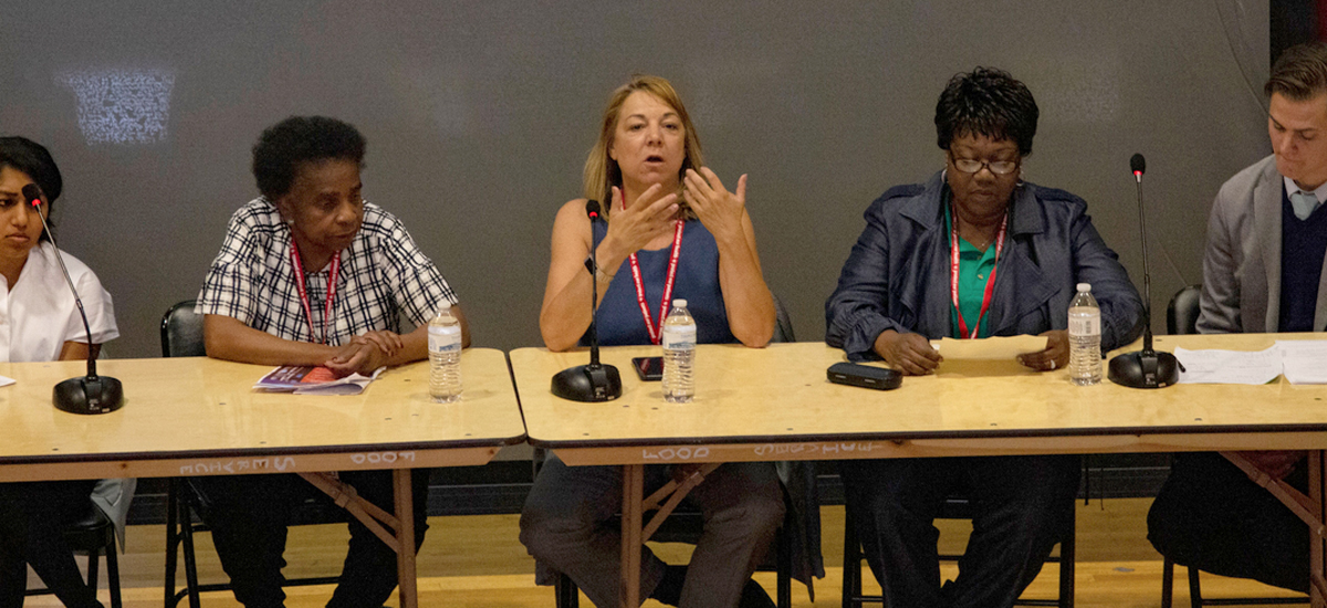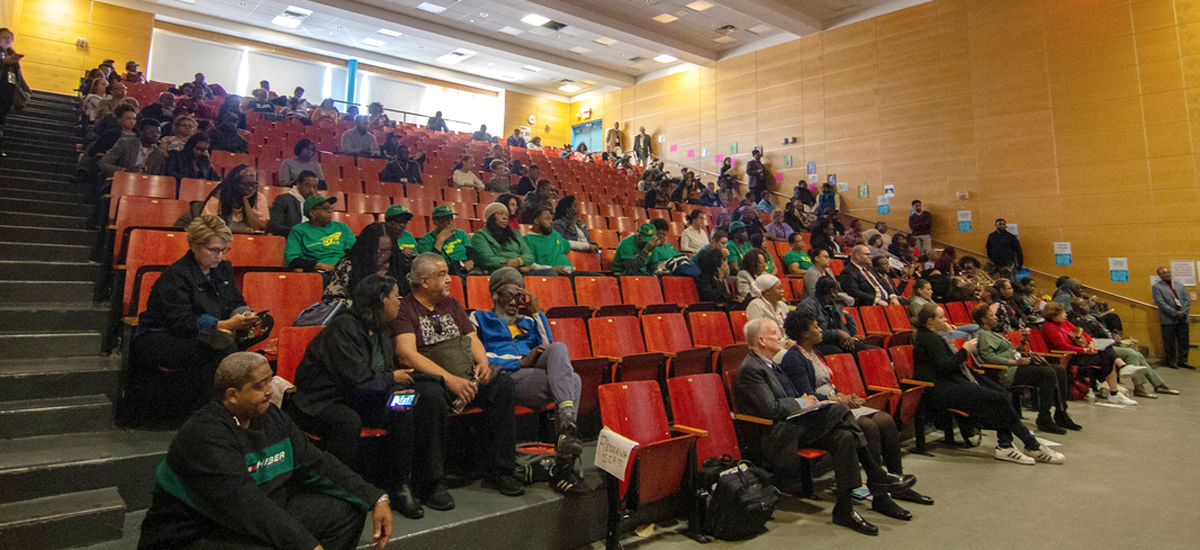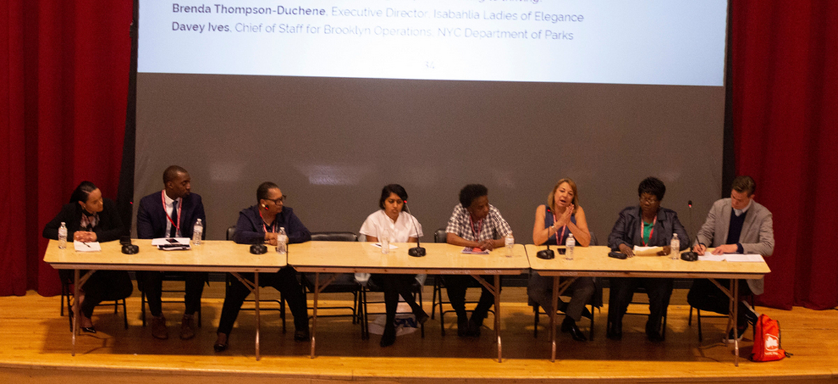 The East Brooklyn Call to Action for Health and Economic Justice was an opportunity for community leaders, activists, and advocates to come together and discuss taking ownership of the community’s health, housing, education, and future. The event was co-sponsored by 1199, One Brooklyn Health System, the NYC Center for Health Equity, DC37, the NY State Nurses Association, Community Care of Brooklyn, East Brooklyn Congregations, the Pitkin Avenue Business Improvement District, the Rogosin Institute, and BMS Family Health and Wellness Centers.