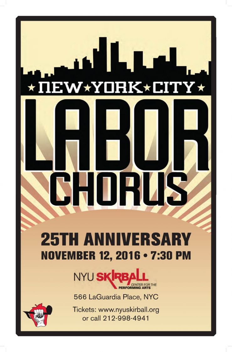 Join the NYC Labor Chorus as they celebrate their 25th Anniversary at the NYU Skirball Center for Performing Arts. The event will be hosted by 1199SEIU Executive Vice President, Steve Kramer on Saturday, November 12 at 7:30pm. Tickets can be purchased by going to www.nyuskirball.org or call 212-998-4941.