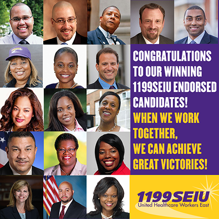 There were some big challenges to several progressive candidates this year, funded by out-of-state billionaires in an attempt to push back their support for public schools and opposition to a private-school tax break that would primarily benefit the very wealthy. Still, the public school advocates all won their primaries handily, with the help of 1199 members. State Senator Gustavo Rivera received 63% of the vote, Assemblywoman Pamela Harris received 64%, Assemblywoman Latrice Walker captured an overwhelming 74% and Long Island Assemblyman Phil Ramos won with an equally impressive 73% of the vote. This is a tremendous victory for grassroots mobilization over outside and over-the-top spending.