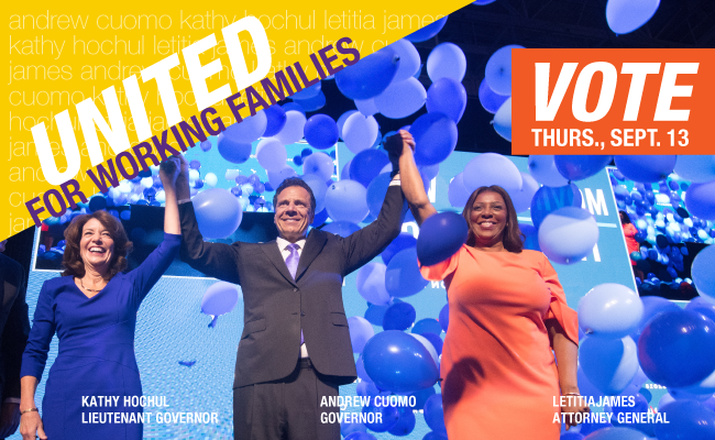 1199SEIU members are actively involved in the New York State Primary Election campaigns for the following candidates: