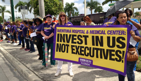 Hundreds Tell Aventura Hospital: No Poverty Wages for Caregivers!
