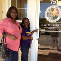 Jerry Depeine, a father of two who works as a dietary aide at Palm Beach Gardens Health and Rehabilitation Center recently visited Representative Gayle Harrell’s district office to let her know he cannot afford to pay for his employers’ health insurance plan and has never had healthcare coverage. He would benefit from Medicaid if it were expanded.