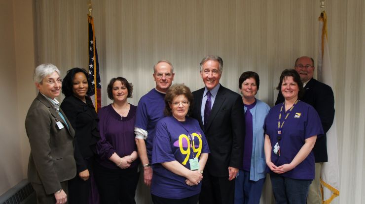 Pictured in courtesy photo left to right: State Representative Gailanne Cariddi, 1199SEIU Executive Vice President Veronica Turner, 1199SEIU members Lisa Pisano, Mike O’Brien, Debbie Poplaski, Congressman Richard Neal, 1199SEIU members Cindy Deblois, Cindy Bird, and North Adams Mayor Richard Alcombright